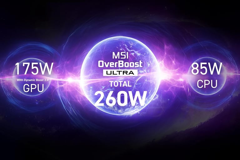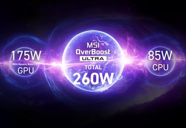 The laptop's CPU (Central Processing Unit) & GPU (Graphics Processing Unit) resources are combined in MSI's OBUT (Over Boost Ultra Technology) to deliver you the best performance and when you use the CPU in this, it sets boost performance in 8-P Core, the power of the CPU is 85W and the GPU power is 175W, so when the power of both of these is combined, it becomes 260W and its performance becomes even better.