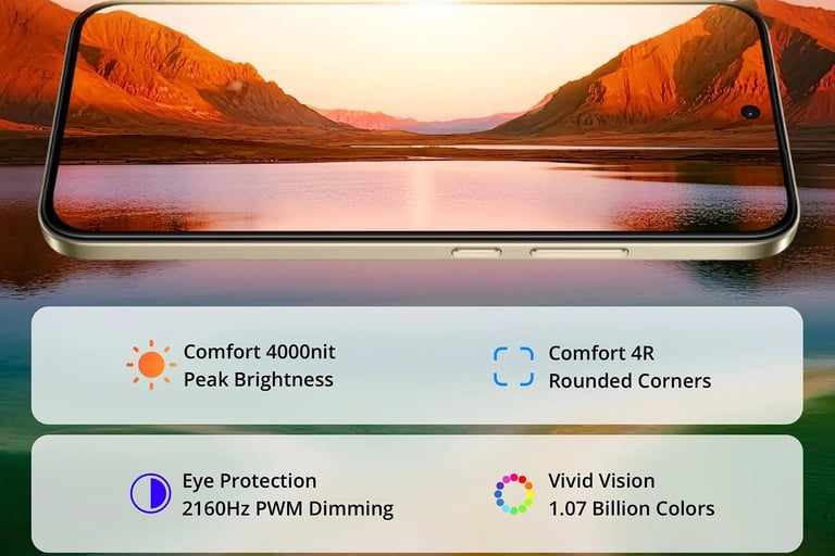 4R Comfort + AMOLED display with 4000 Nits Brightness which gives you a clear view on the phone even in sunlight, so that you can use and scroll your phone hassle free under the sunlight and with eye protection (2160Hz PWM Dimming).